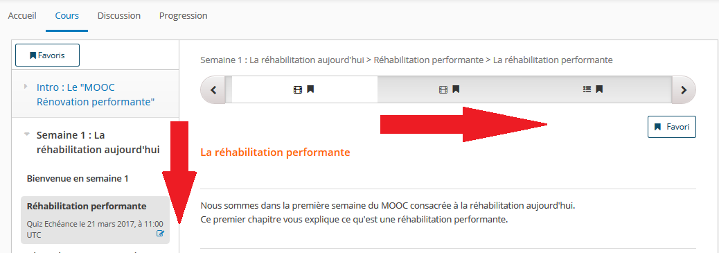 Pour vous rendre dans le forum, il vous suffit de cliquer sur l'onglet "Discussion" dans la barre de navigation principale du cours.